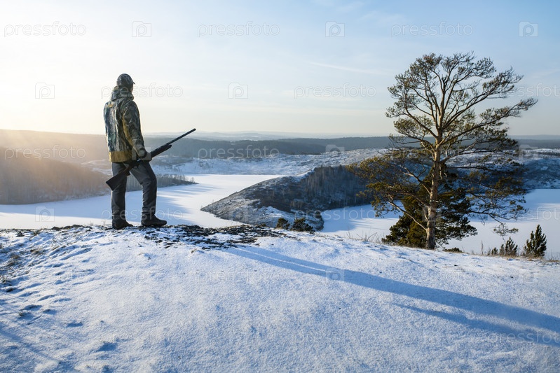 Охотник во время зимней охоты. Сезон зимней охоты