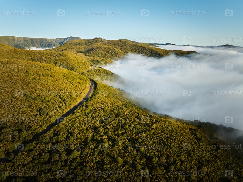 Вид с воздуха на зеленые холмы острова Мадейра, Португалия
