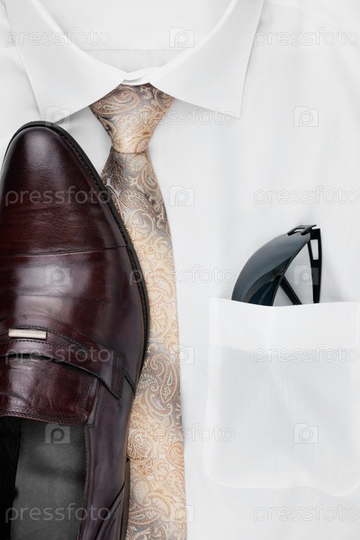 Мужские классические аксессуары: рубашка, галстук, туфли, как фон