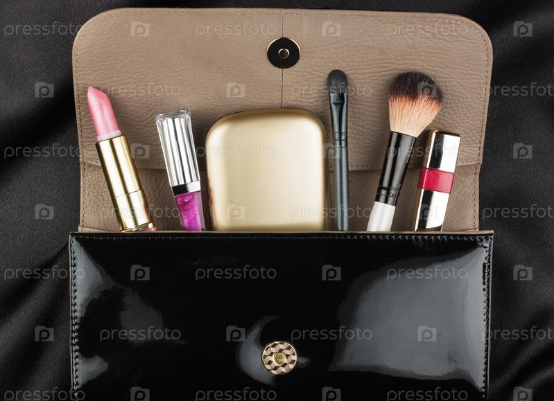 Черная лакированная сумка с косметикой