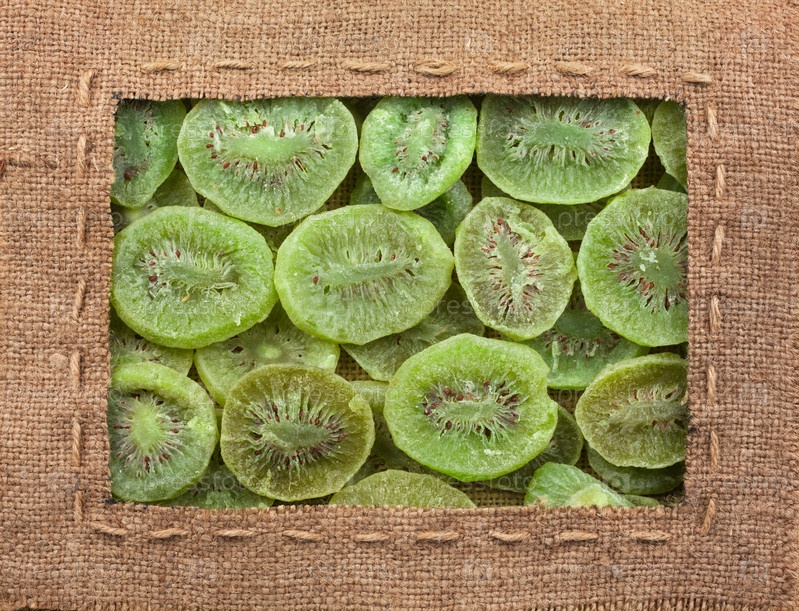 Рамка из мешковины с линией лежит на сушеном киви