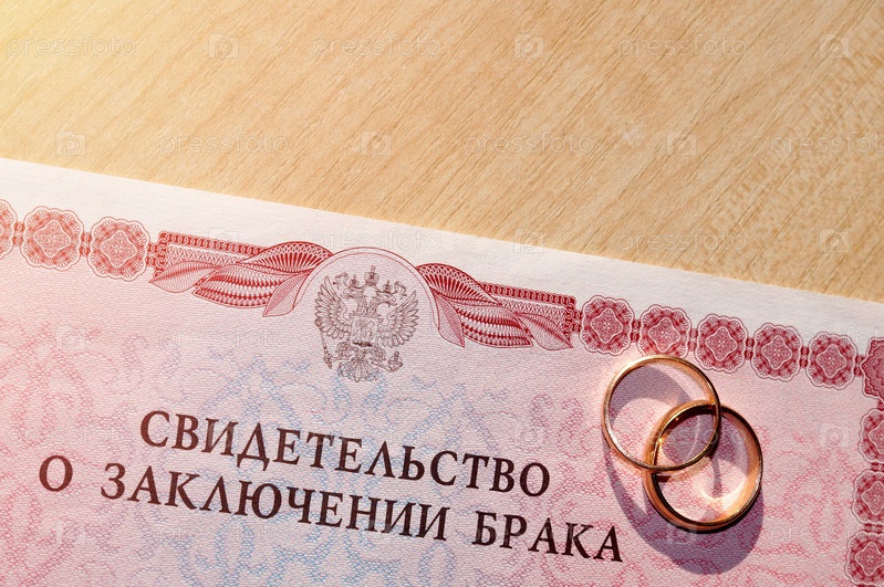 Свидетельство о заключении брака и два золотых кольца