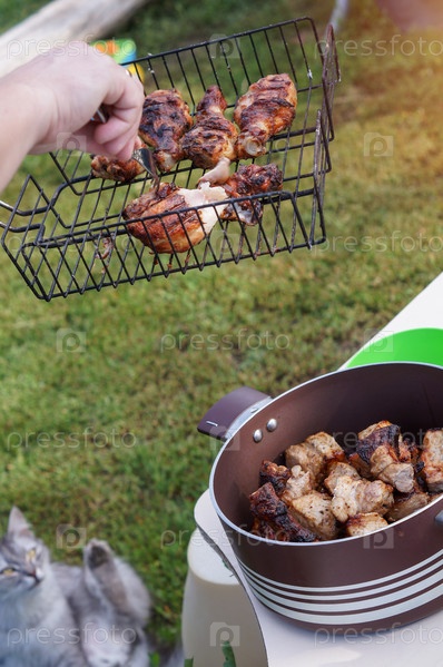 Природа, шашлык и голодный кот