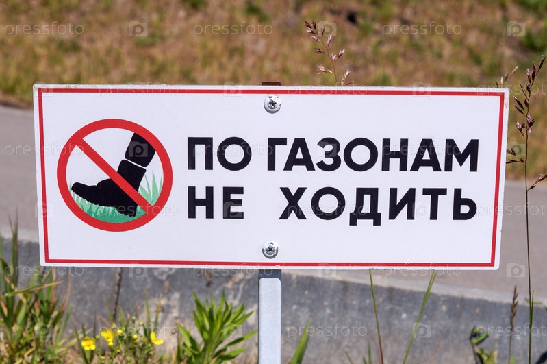 Табличка По газонам не ходить с изображением ноги в красном перечеркнутом круге