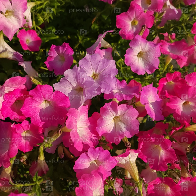 Розовые цветы петунии цветут в саду, цветочный фон петунии