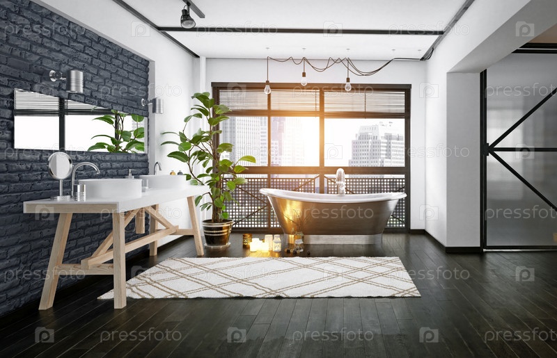 Современный дизайн ванной комнаты в стиле лофт