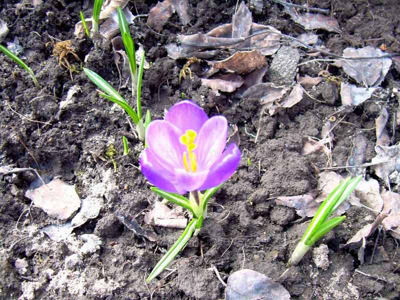 Весна в цветнике, первоцветы, крокус фиолетовый