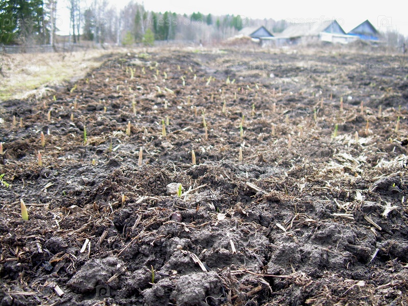 Весенние всходы чеснока на грядке