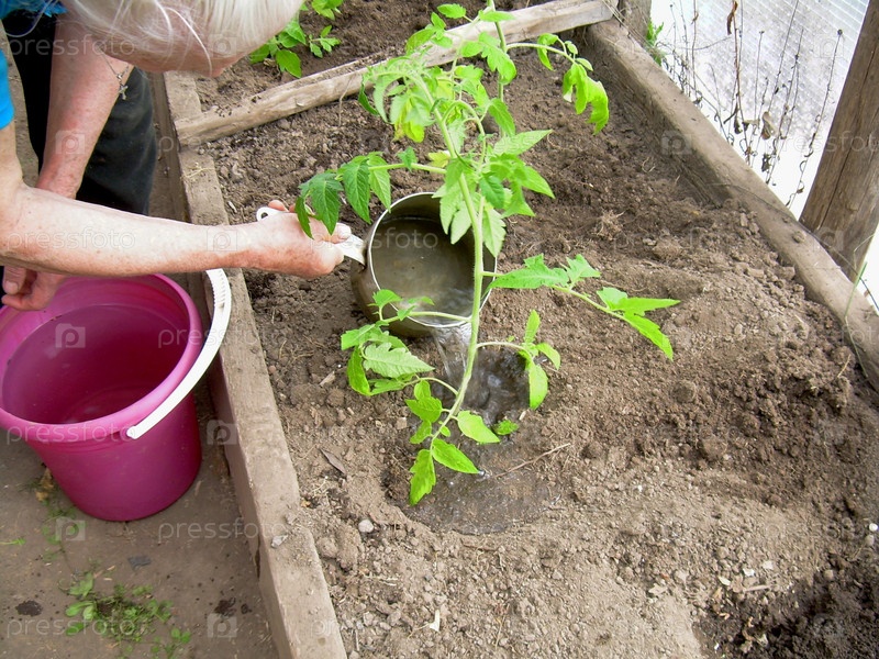 Полив рассады помидоров в теплице