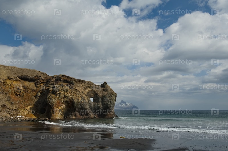 Россия. Дальний Восток. Курильские острова. Живописное скалистое побережье острова Итуруп в Охотском море