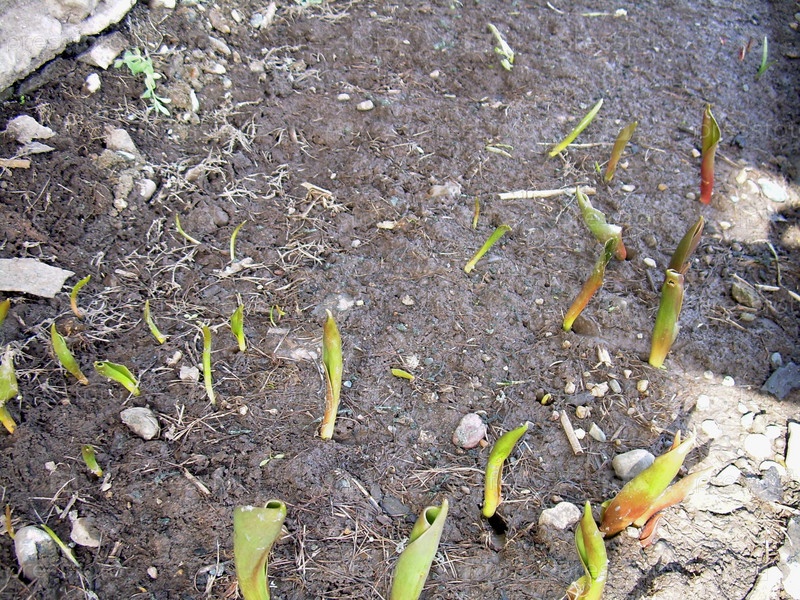 Тюльпаны весной, первые росточки