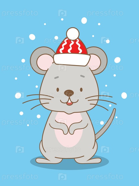 Милая рождественская открытка с мультяшной мышкой