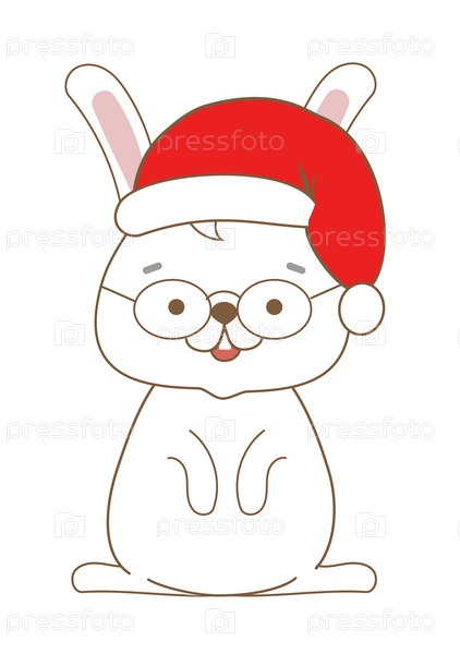 Кролик в красной шапке на белом фоне