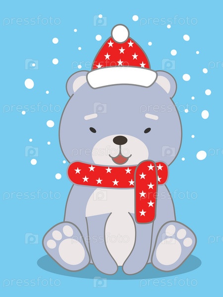 Милая рождественская открытка с мультяшным белым медведем
