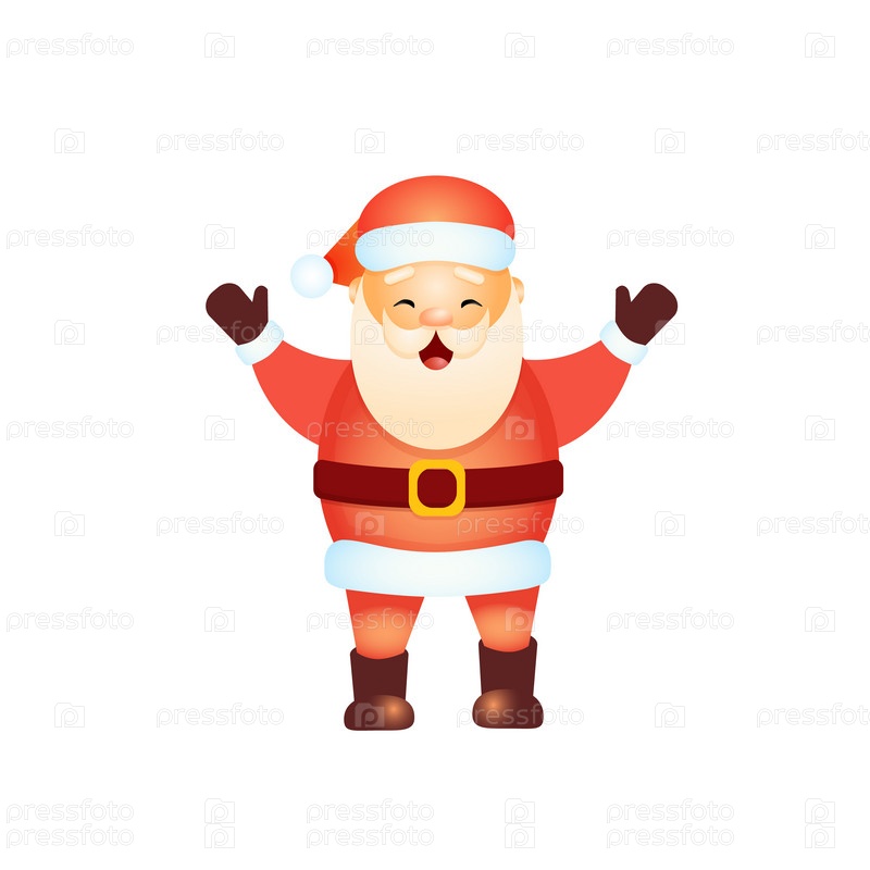 Счастливый Дед Мороз поднял руки вверх
