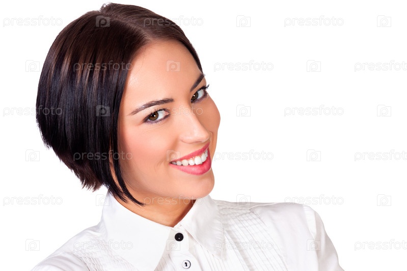 Улыбающаяся красивая девушка на белом фоне, изолированная