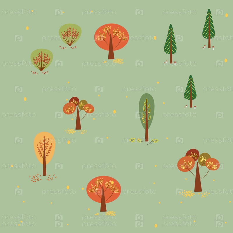 Бесшовный фон со стилизованными осенними деревьями