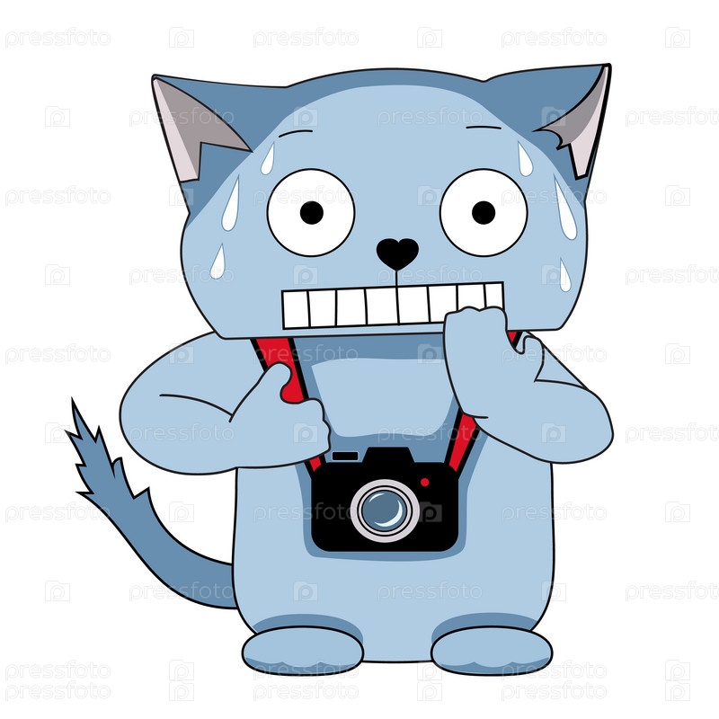 Забавный фотограф-мультяшный кот с испуганным лицом