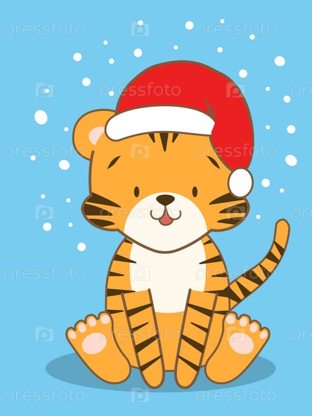 Милая рождественская открытка с мультяшным тигром