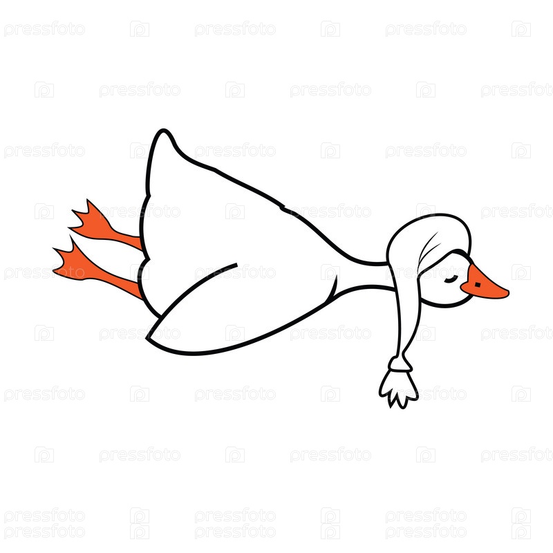 Забавный гусь, спящий в ночном колпаке