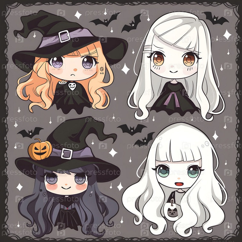 Милая ведьма в шляпе на белом фоне, графическая иллюстрация, ведьма в стиле аниме, ведьма в шляпе, тема Хэллоуина