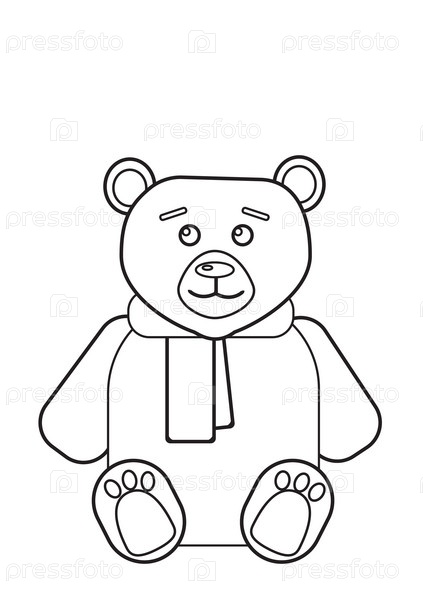 Милый плюшевый мишка в шарфике. Контур векторных иллюстраций
