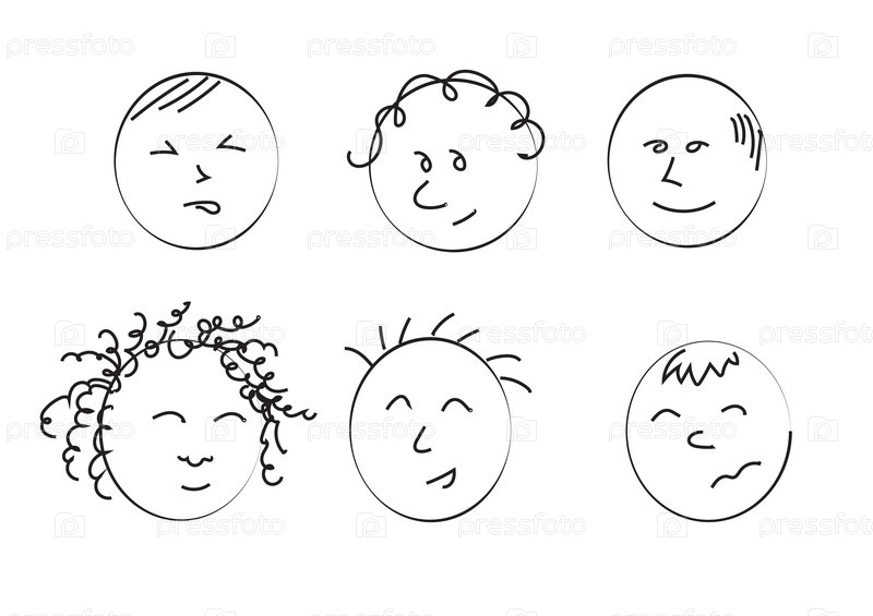 Симпатичный контур шести человек сталкивается с разными эмоциями
