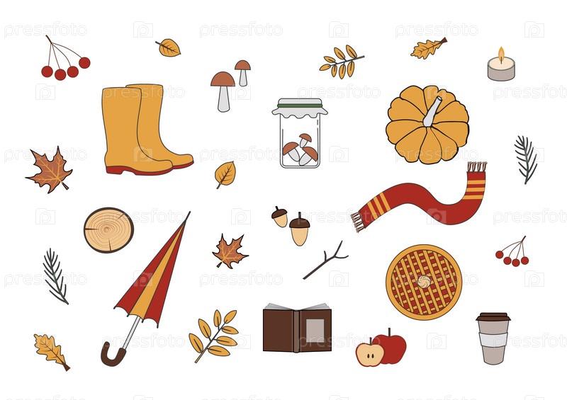 Осенний набор иконок и плоских объектов