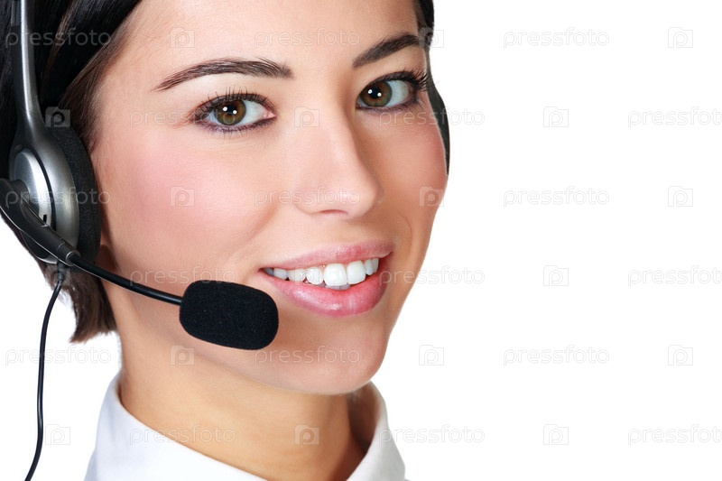 Крупным планом портрет улыбающейся девушки из службы поддержки клиентов, изолированной на белом фоне