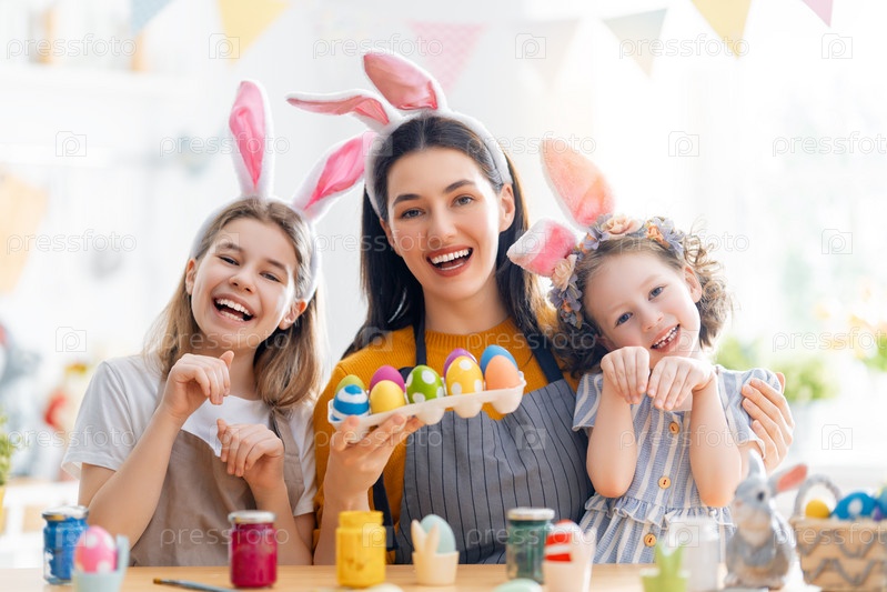 Счастливая семья готовится к Пасхе