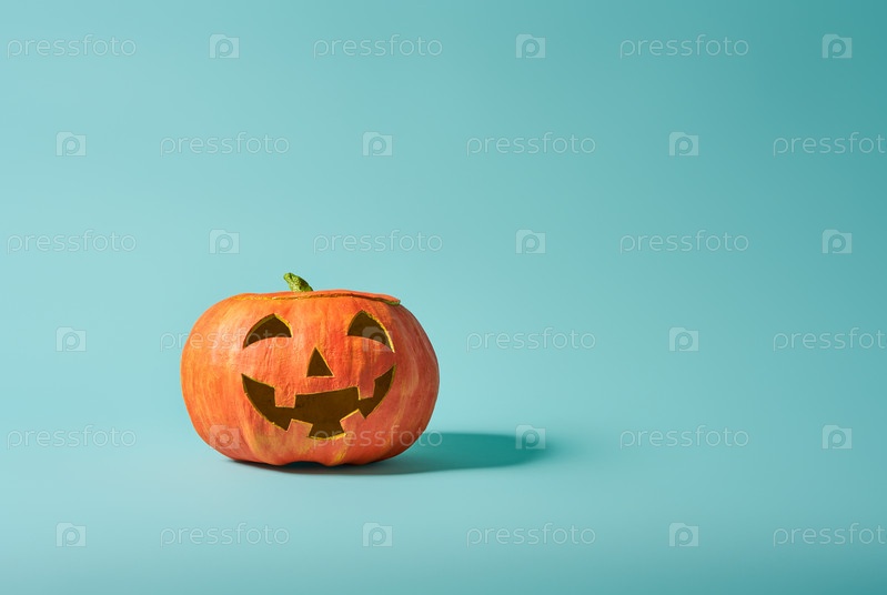 Тыквенный фонарь на бирюзовом фоне