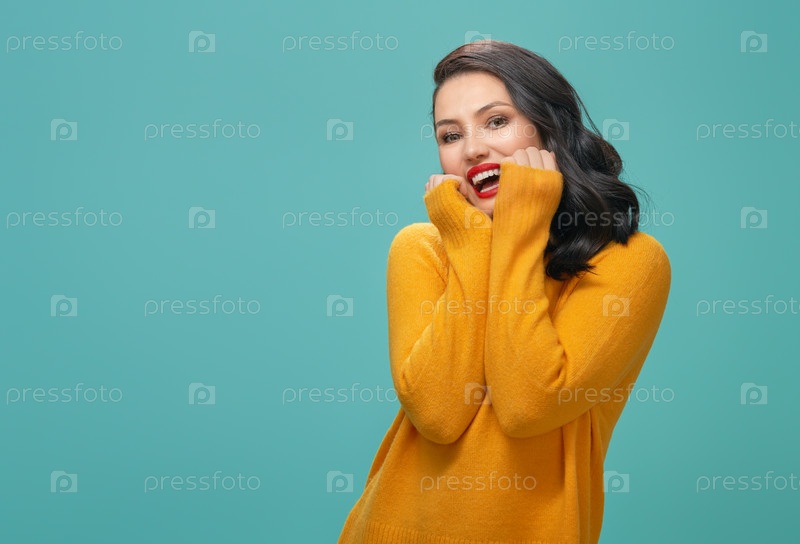 Женщина на бирюзовом фоне