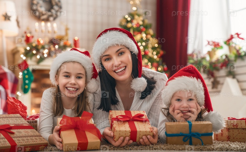 Семья празднует Рождество