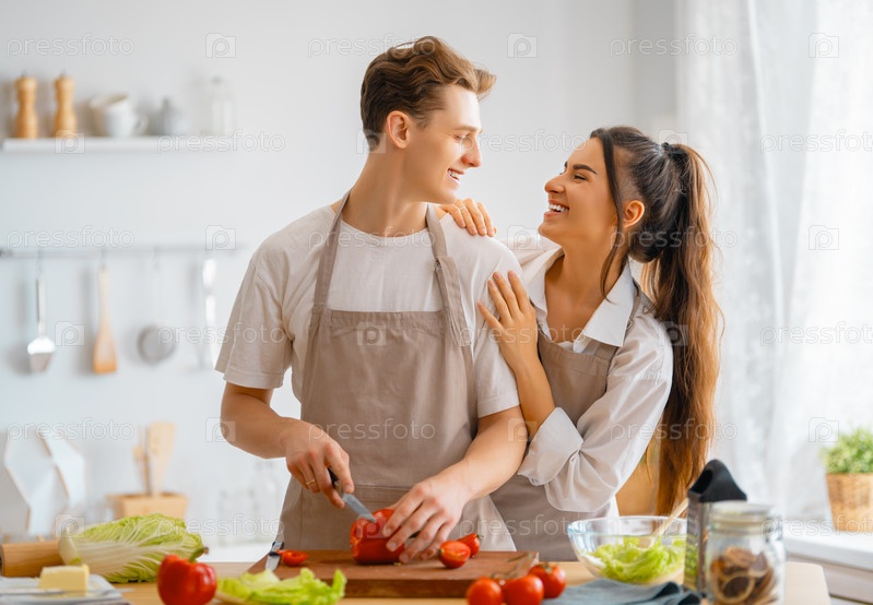 Влюбленная пара готовит настоящую еду