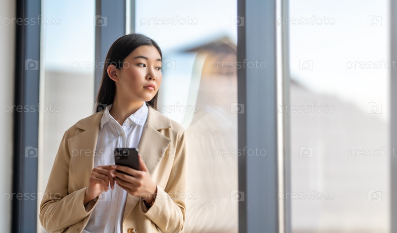 Азиатская женщина пользуется телефоном