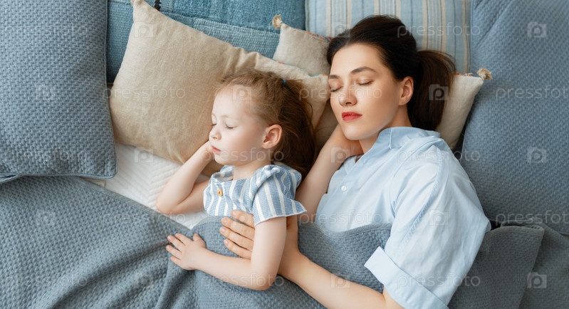 Девочка и ее мама дремлют