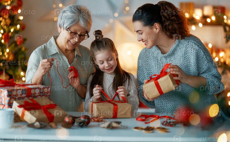 Семья готовится к Рождеству