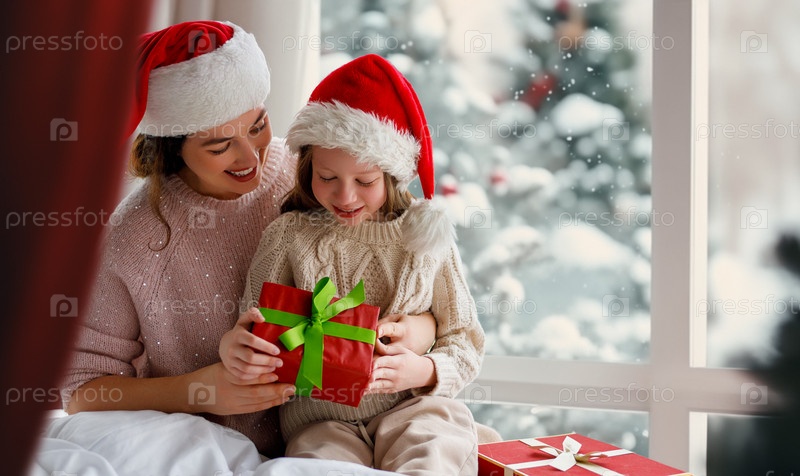 Мама и дочь обмениваются подарками