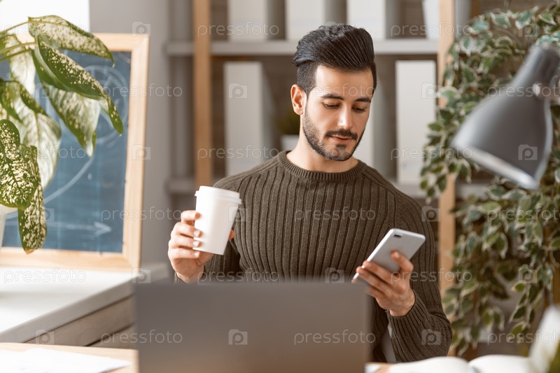 Мужчина работает на ноутбуке дома