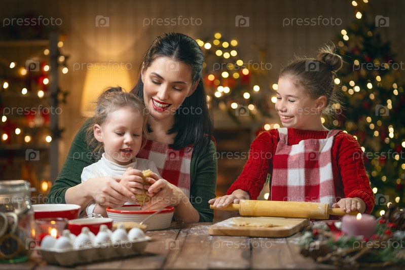 Семья готовит рождественское печенье