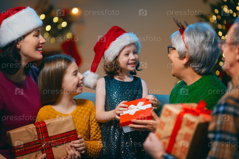 Семья празднует Рождество