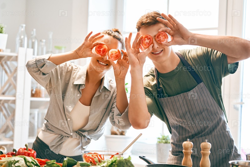 Влюбленная пара готовит настоящую еду