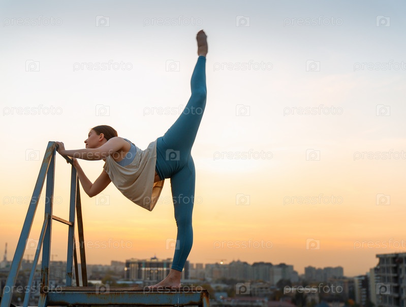 Спортсменка занимается йогой