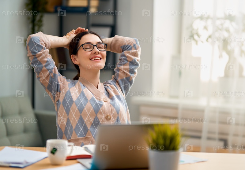 Женщина работает на ноутбуке