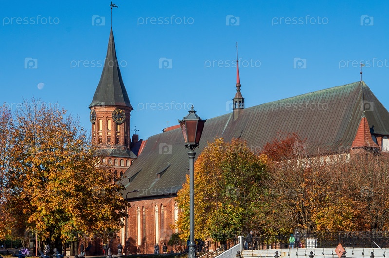 Калининград, Россия - 2021, 25 октября: Собор на острове Иммануила Канта. Достопримечательность города осенью