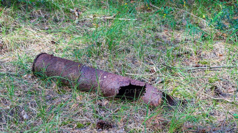 Остатки боевых мин в лесу. Зенитная бомба времен Великой Отечественной войны