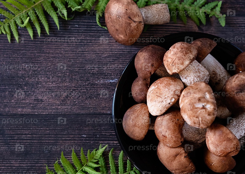 Гриб Cep или Boletus, растущий на пышно-зеленой мхе в лесу, вид под низким углом