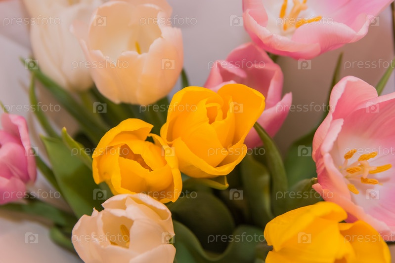 Весенний букет разноцветных тюльпанов. Селективный фокус