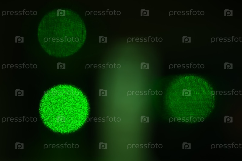 Абстракция линий и кругов или шариков зеленого цвета, фото лазерного свечения
