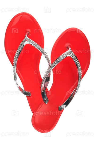 Сланцы или шлепанцы украшенные стразами, изолированные